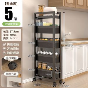 シルバーのロングハンドル - 隙間引き出しタイプ 5層 ブラック コストパフォーマンスに優れた1枚板4段引き出し✦