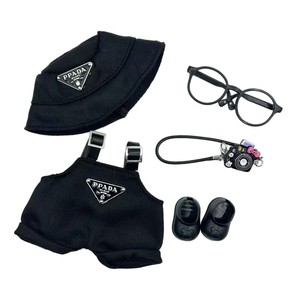 第一世代、第二世代、第三世代のラブベビー服 17CM シットパーティー LABUBU 交換用黒帽子サスペンダーセット メガネアクセサリー