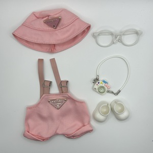 ピンクのスーツ ৲ 帽子 + 服 + メガネ + カメラ + 靴