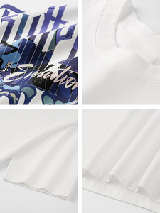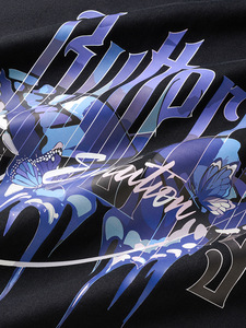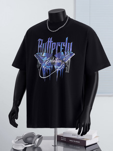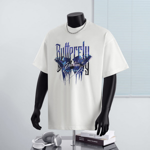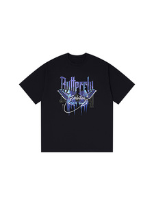 男装潮牌蓝蝴蝶印花T恤街头圆领宽松短袖重磅情侣款休闲上衣女ins