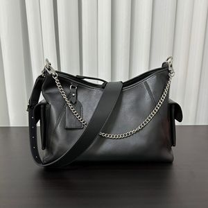 2025新款头层软牛皮黑武士机车邮差包单肩通勤托特链条真皮女包