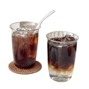 クリエイティブハンドルレス単層カップラテコーヒーアイスアメリカンウォーターカップシンプルな透明家庭用逆口高温耐性ガラスカップ