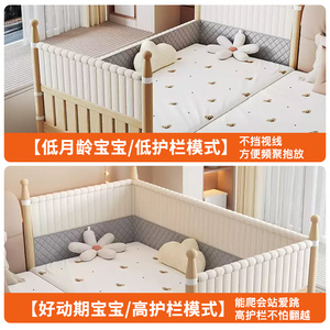 【护栏可升降】三面高护栏|床高可调(荷兰绒床围+6CM椰棕含乳胶床垫)