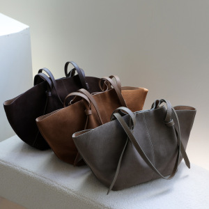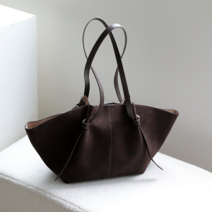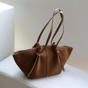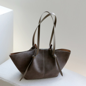 ニッチデザインレトロつや消し牛革トートバッグカジュアル大容量本革ウィングバッグ通勤ショルダー脇バッグ