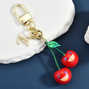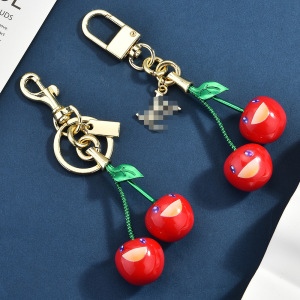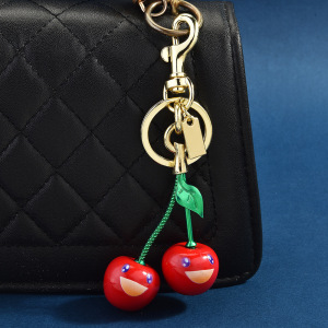 スマイリーフェイスレッドチェリーファッションバッグペンダントキーホルダー樹脂チェリーペンダントペンダントレディースバッグバックパックアクセサリー