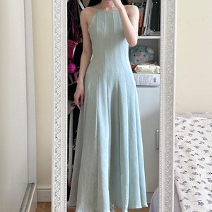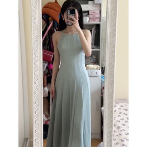 法式无袖挂脖连衣裙显瘦收腰纯欲风显气质垂感小众褶皱露背长裙