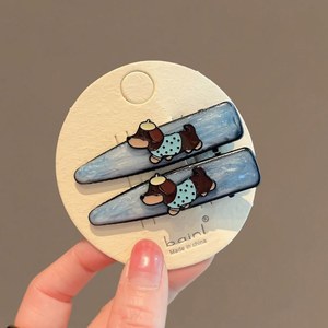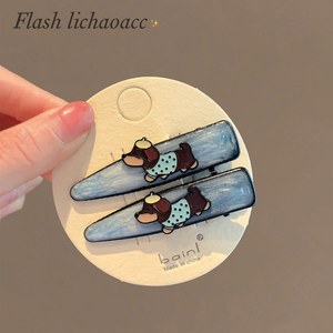 韩版精致侧边夹蓝色晕染细闪发夹女可爱小狗发饰2025新款刘海夹子