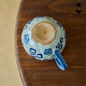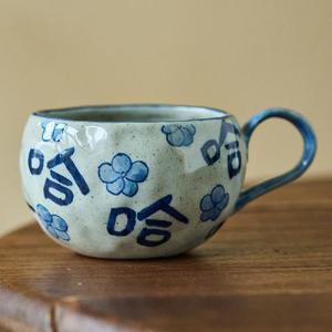 陶美集青花手绘咖啡杯办公室个人专用马克杯水杯景德镇粗陶哈哈杯