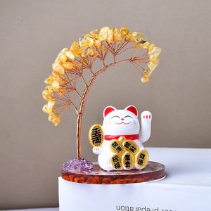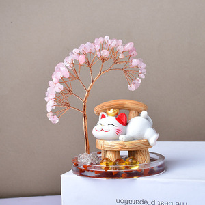 天然水晶フォーチュンツリー招き猫装飾品車ホームオフィスレジデスクトップアクセサリークリスマスギフト