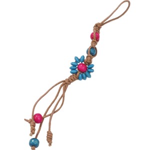 新款纯手工编织花朵木珠创意diy棉绳钥匙扣手机挂件包包挂绳
