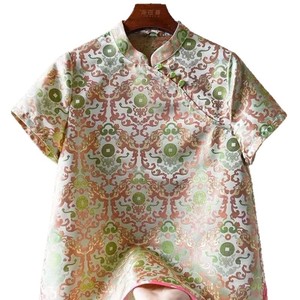 高品質、快適で通気性のあるシルク年齢軽減中年女性改良斜め襟シャツ夏の中国風のレトロな新しい中国風のトップ