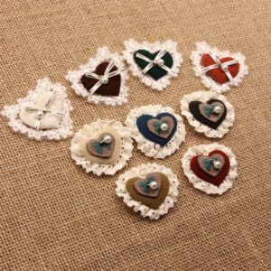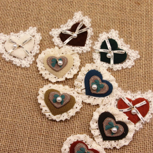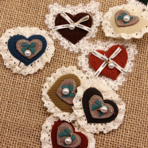 新款珍珠蝴蝶结桃心蕾丝底配饰 diy可爱爱心帽子玩具工艺品装饰