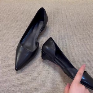 牛革バージョン~ミニマリストスタイルの女性用ポインテッドトゥ浅口サイドオープンシューズ2025新しい夏と秋の多用途ローヒール通勤靴