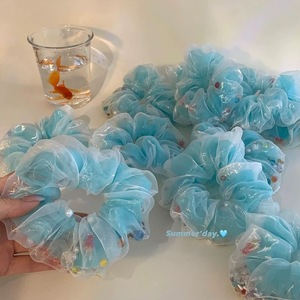 女性用の新鮮な小さな金魚バブルオーガンザヘアゴム、新鮮で甘いヘアロープヘアアクセサリー