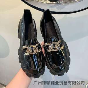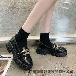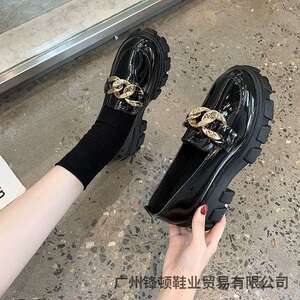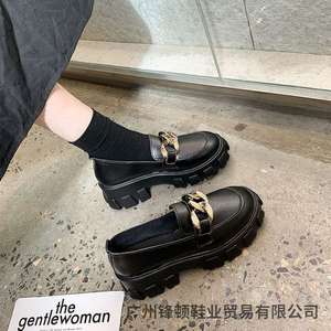 24秋の新作韓国版多用途レトロチェーンローファー厚底ラウンドトゥシングルシューズJKレディース英国風小さな革靴