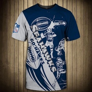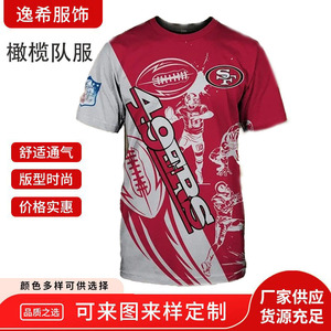 跨境橄榄球衣t恤男装夏季青少年宽松上衣 3D数码印花圆领男士短袖