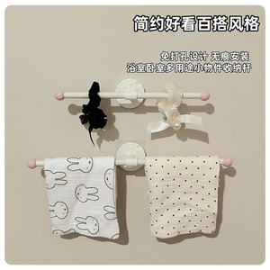 ins シンプルでクリエイティブな収納タオルバーヘッドロープヘッドバンド収納ラックパンチフリー浴室収納ラック収納