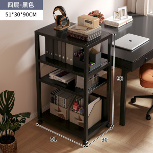 书桌旁书架落地置物架多层钢木收纳储物架可移动带轮架子简易书柜