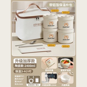 陶瓷内胆【插电恒温保温24小时】400ml*4(送充电头+线+餐具+保温袋)...