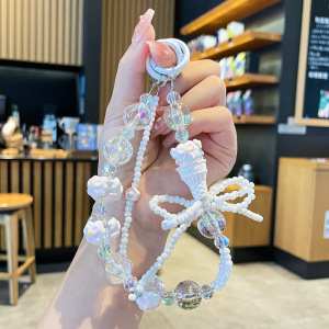 Douyin ライブインターネット有名人手描きビーズ携帯電話チェーンキーホルダーハンギングチェーン学生バッグペンダントリストストラップストラップギフト