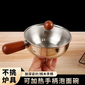 厚みのあるステンレス鋼の小さな鍋、多機能調理ソースボウル、火傷防止木製ハンドルの小さなボウル、ミルク栄養補助食品の小さな鍋
