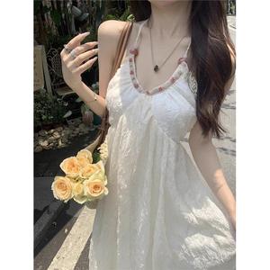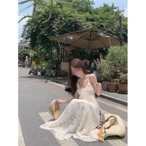 海边度假沙滩裙女旅游连衣裙白色三亚出片穿搭旅行裙子长裙多巴胺