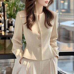 杏色职业装衬衫女装长袖衬衣法式收腰显瘦秋季上衣