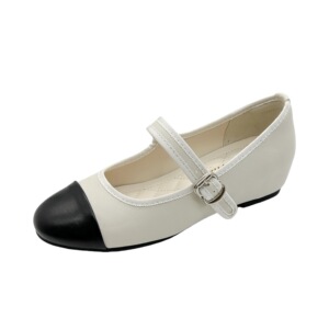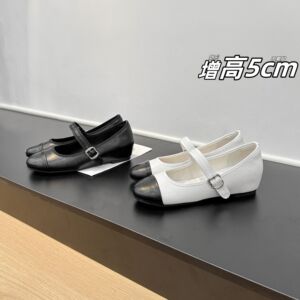身長を5cmアップするカラーブロックの女性用バレエシューズ、2025年新作フレンチラウンドトゥフラットメリージェーンシューズ