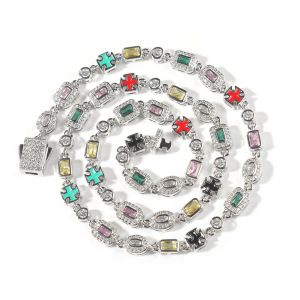 ヨーロッパとアメリカのヒップホップの新しい 6 ミリメートルカラフルな宝石ブレスレットニッチファッションパーソナライズされたダイヤモンドがちりばめられた男性と女性のトレンディなネックレス卸売