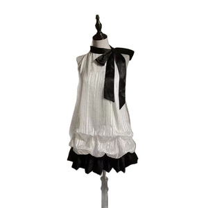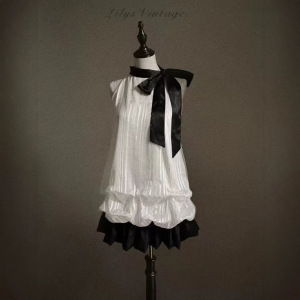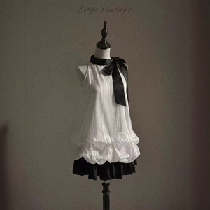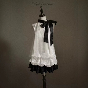 实拍法式莉莉丝 vintage古着千金风 挂脖花苞连衣裙 蝴蝶结拼接短