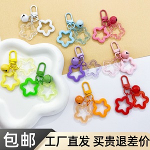 DIY创意铃铛钥匙扣双五角星可爱包挂件手机链饰品配件钥匙圈挂饰