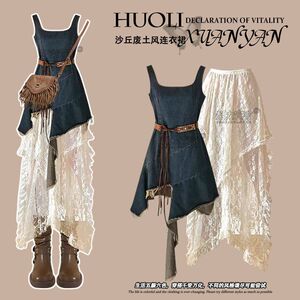 夏季套装女2025新款民族风宽松上衣搭配波西米亚吊带连衣裙两件套