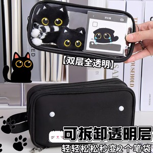スカーフ子猫~取り外し可能な透明鉛筆バッグ女の子痛バッグ文具箱イン小学生女の子汚れにくい鉛筆バッグ