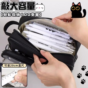 ギフトにおすすめのギフトバッグ/黒ペンケース+スカーフ子猫+猫頭+猫ブラシペン4本+白ペン5本+リフィル10本+付箋100枚+ルーズリーフ