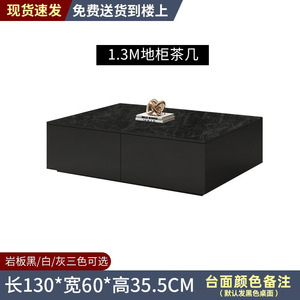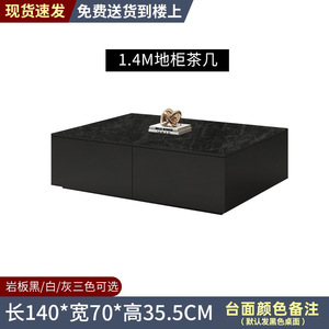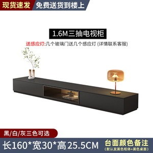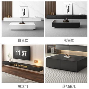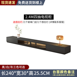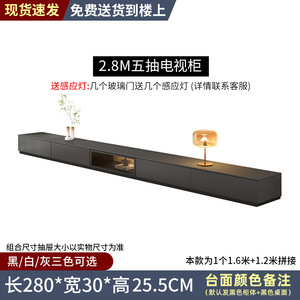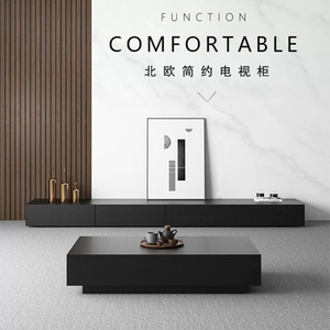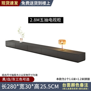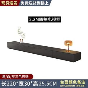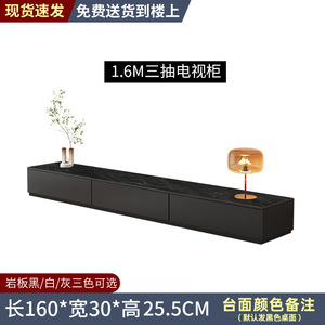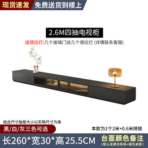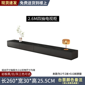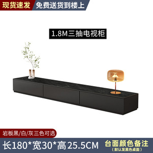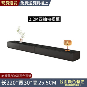 超长黑色落地电视柜茶几组合现代简约客厅家用岩板地柜轻奢感