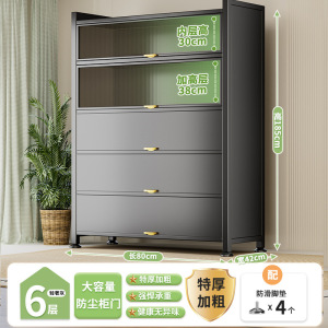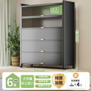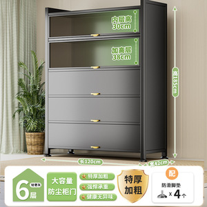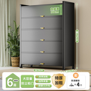 家庭用収納キャビネット壁一体型防塵収納キャビネットスチールシンプルワードローブ寝室バルコニー鉄キャビネット収納ラック