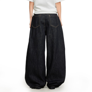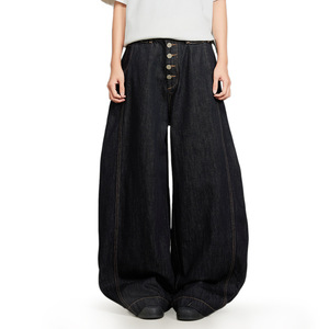 美式高街弯刀牛仔裤男款排扣开襟宽松阔腿长裤vibe潮牌廓形镰刀裤
