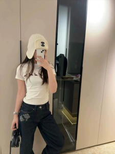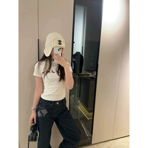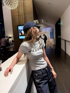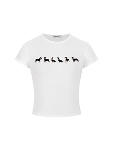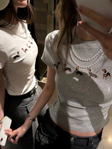 ジェニーと同じネックレス犬プリント半袖 Tシャツ女性のための 2025 夏の新しいスリムフィット外国貿易女性のトップ