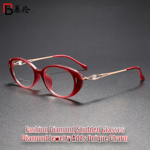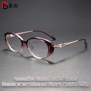 新しいエレガントで絶妙なダイヤモンドがちりばめられた抗青色光フラットメガネハイエンドの雰囲気シンプルで実用的なメガネフレーム F6020