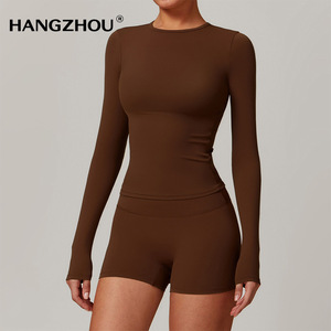 欧美磨毛速干高弹瑜伽套装跑步运动健身服裸感显瘦紧身健身套装