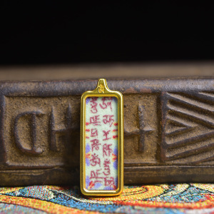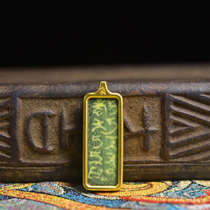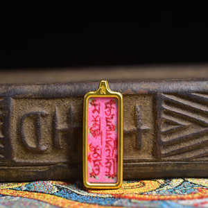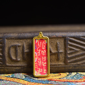 藏传唐卡画心矿砂菩萨心经八大守护神1*3小金条随身唐卡挂件御守