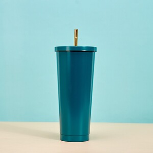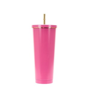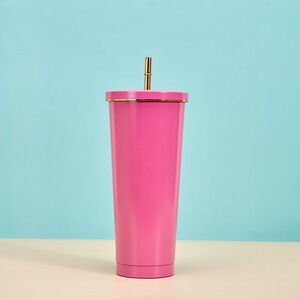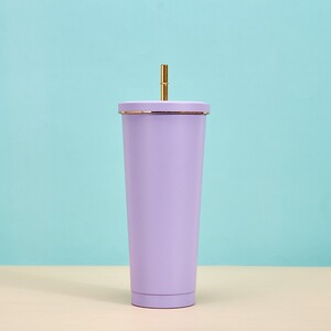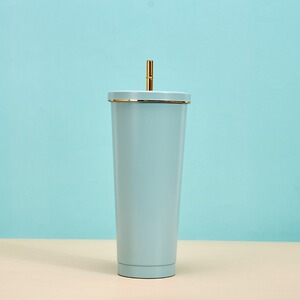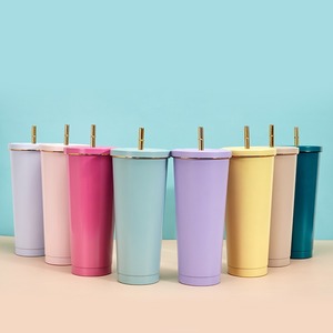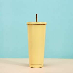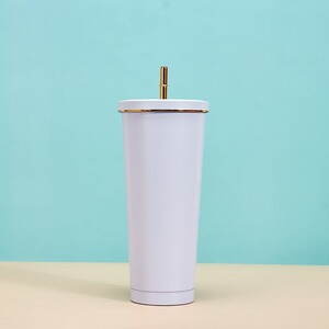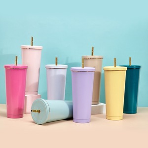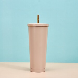 创意马克龙色金边吸管杯304不锈钢便携保温杯高颜值时尚咖啡杯