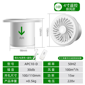 D款4寸排风+止回阀+遥控