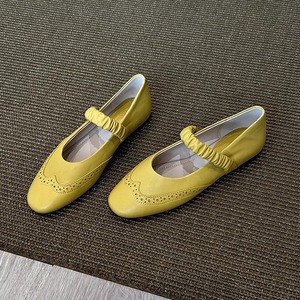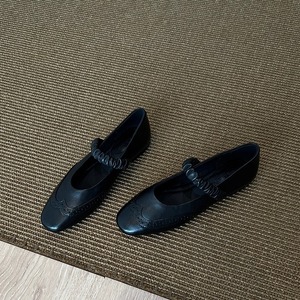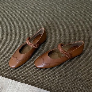 打版中复古法式真皮圆头浅口雕花一字带休闲玛丽珍鞋女平底单鞋