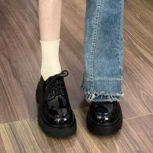 RDJF 英国風厚底スモールレザーシューズ女性用 2025 秋新作多用途黒 JK シューズプラットフォームローファーイントレンド