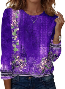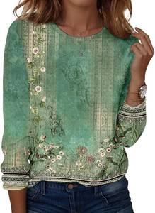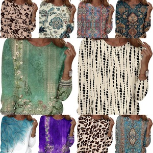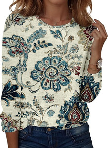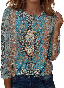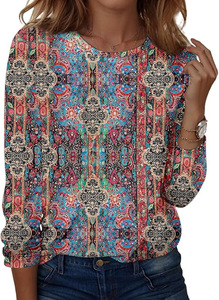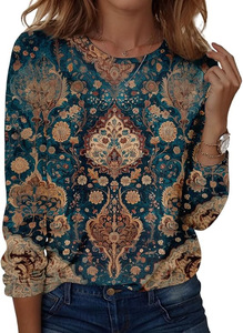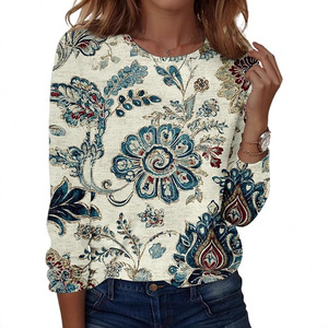 2025年アマゾンホットクロスボーダー夏ヨーロッパとアメリカの新しいボヘミアンペイズリー長袖Tシャツ