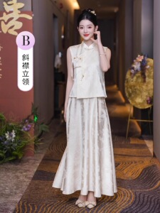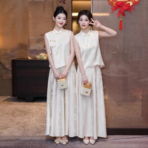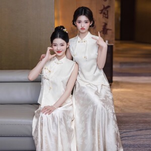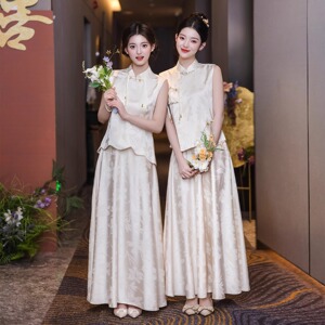 新中式伴娘服2025新款夏季姐妹团香槟色礼服裙高级感绝美订婚旗袍