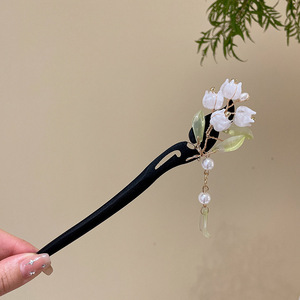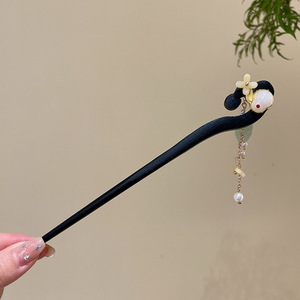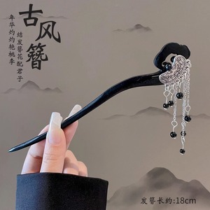 黑檀木新中式发簪女现代简约流苏发钗古风气质高级感盘发头饰