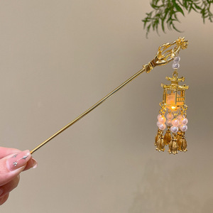 74#玉兔粉花流苏发簪-金色 (袋装).