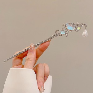2#植绒蓝色花百珠吊坠发簪-金色 (袋装).